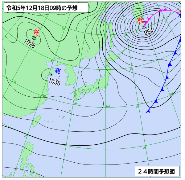 明後日は、気圧の谷の影響で、曇り、昼前は雨が降る見込みです。
