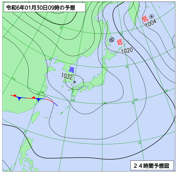 明日は、湿った空気の影響で、朝まで曇りますが、その後は西日本は高気圧に覆われて、晴れてくるでしょう。