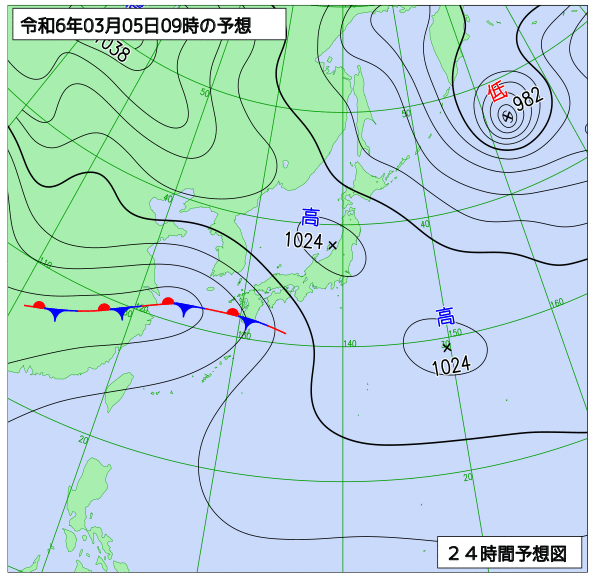 明後日は、前線や湿った空気の影響で、曇り、昼前まで雨が降る見込みです。