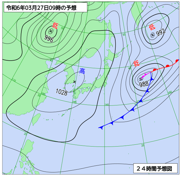 明後日は、気圧の谷の影響で曇り、夕方からは雨が降る見込みです。