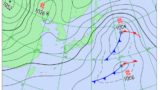 明日は、気圧の谷の通過で、朝までにわか雨や雷雨があり、その後は高気圧に覆われてくるため、晴れてくるでしょう。