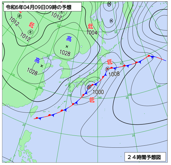 明日は、気圧の谷の影響で、曇り、雨が昼前まで降るでしょう。