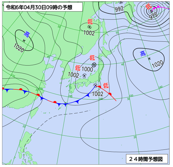 明後日は、気圧の谷の影響で曇り、朝から昼前は雨の降る所がある見込みです。