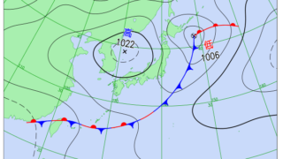 今夜のレーダー画像では、対馬海峡から中国地方まで弱い雨雲が観測されています。