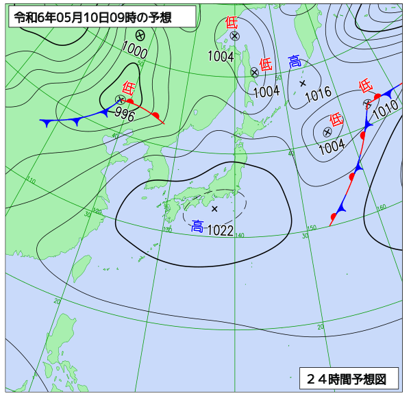 明日は、日本の東に中心を持つ高気圧に覆われて、晴れて気温が上がるでしょう。