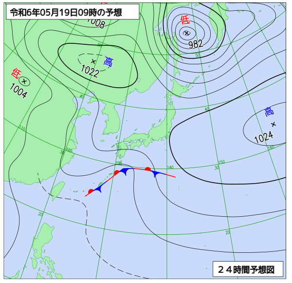 明後日は、気圧の谷の影響で朝まで曇りますが、その後は高気圧に覆われて晴れる見込みです。