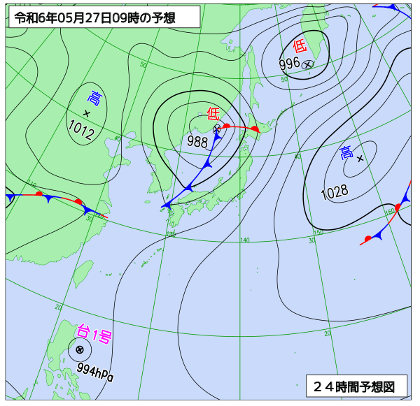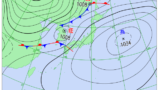 明日は、前線が昼過ぎに南下するため、雨が昼過ぎまで降るでしょう。