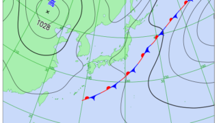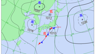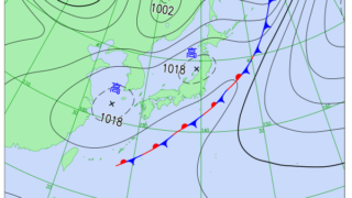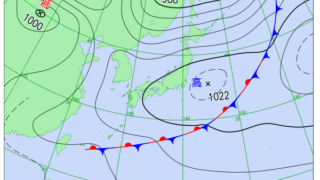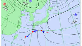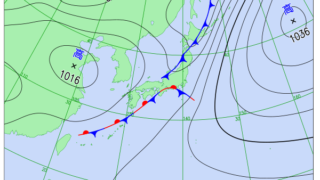 今夜の衛生赤外画像では、気圧の谷の影響で、曇っています。