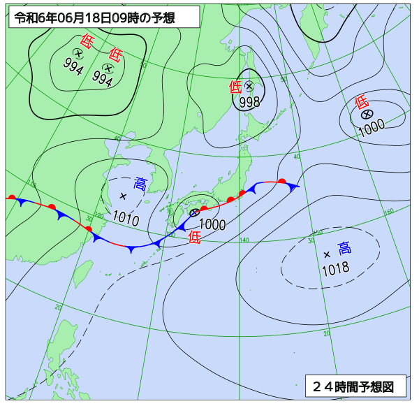 明日は、前線が西日本を通過するため、雨が朝まで降るでしょう。