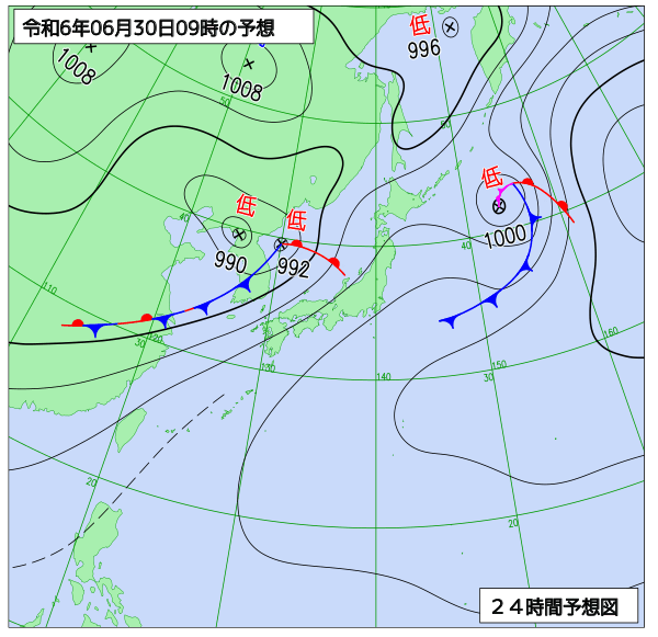 明日は、前線が日本海に停滞するため、雨が断続的に降るでしょう。
