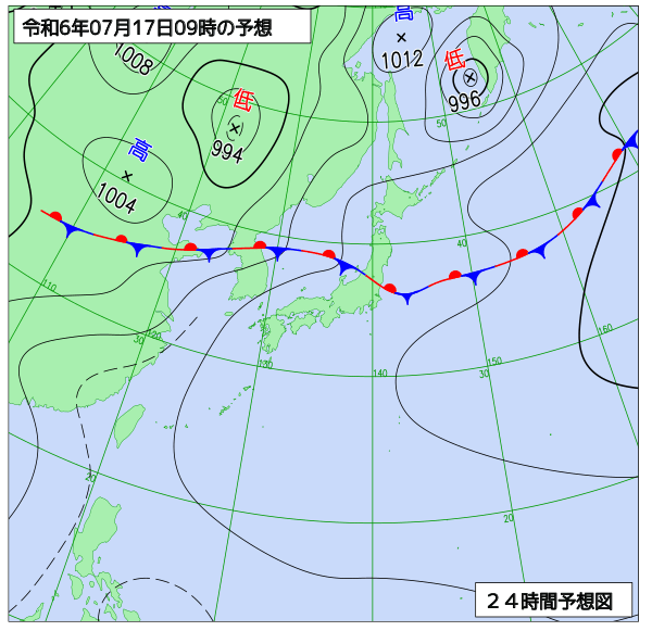 明日は、湿った空気の影響で、曇り、朝までにわか雨の降る所があり、その後は次第に晴れてくるでしょう。