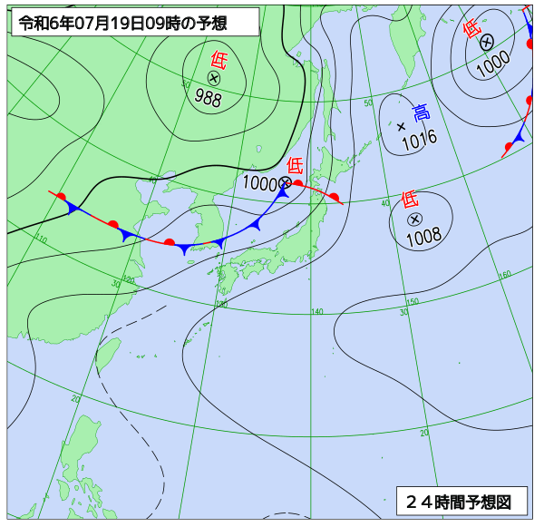 明日は、気圧の谷と湿った空気の影響で、概ね曇り、雨が昼過ぎから夕方にかけて降るでしょう。