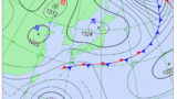 明日は、湿った空気と気圧の谷の影響で、朝から雨が断続的に降るでしょう。