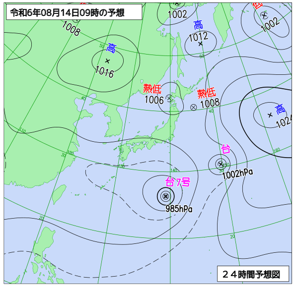 明日は、高気圧の圏内で晴れますが、午後からは湿った空気の影響で、雷雨の所があり、猛暑に注意してください。