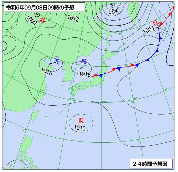明日は、気圧の谷の通過で、概ね曇り、昼過ぎからは雷雨の所があるでしょう。
