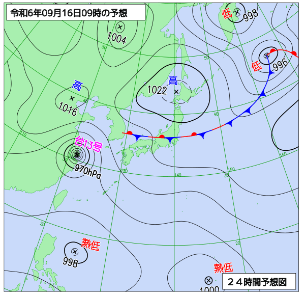明後日は、湿った空気の影響で、曇り、午後は雷雨の所がある見込みです。