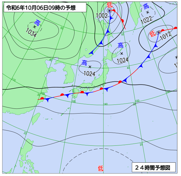 明日は、気圧の谷の影響で、曇り、夜は雨が降るでしょう。
