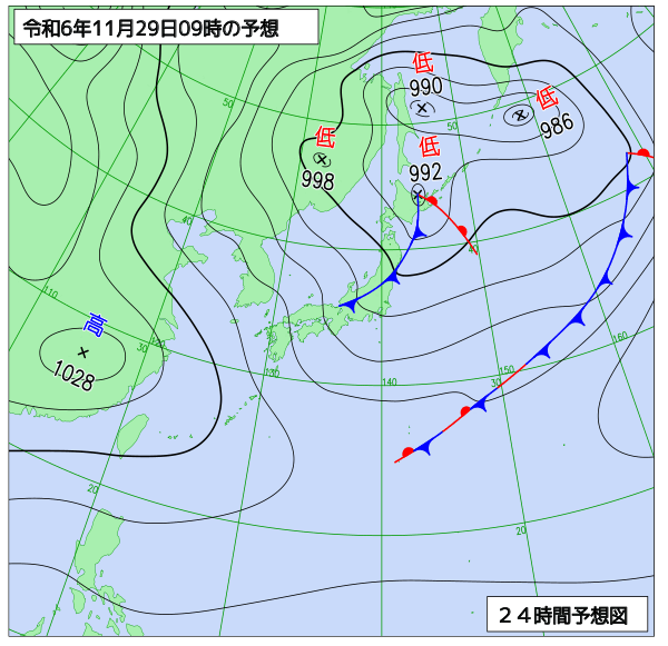 明日は、寒気と気圧の谷の影響で、雨が断続的に降るでしょう。