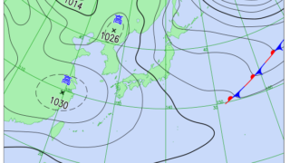 今夜のレーダー画像では、前線に対応する雨雲が山陰沿岸で観測されています。