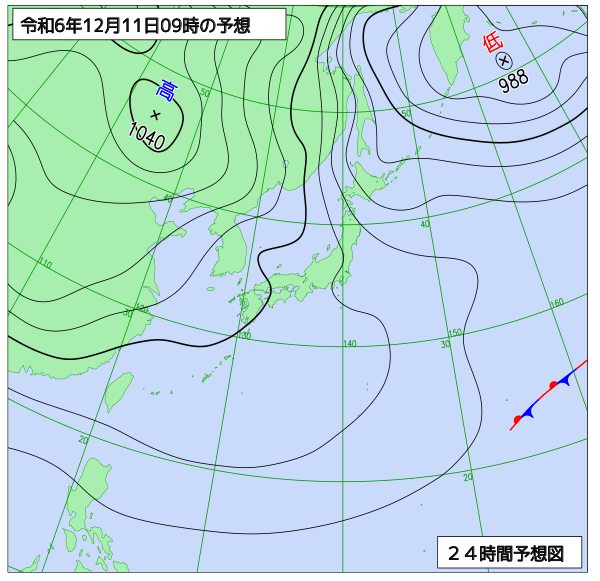 明後日は、寒気と気圧の谷の影響で、曇り、朝まで雨が降る見込みです。