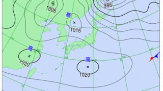 今夜のレーダー画像では、気圧の谷と寒気の影響で、山陰では雨雲が観測されています。