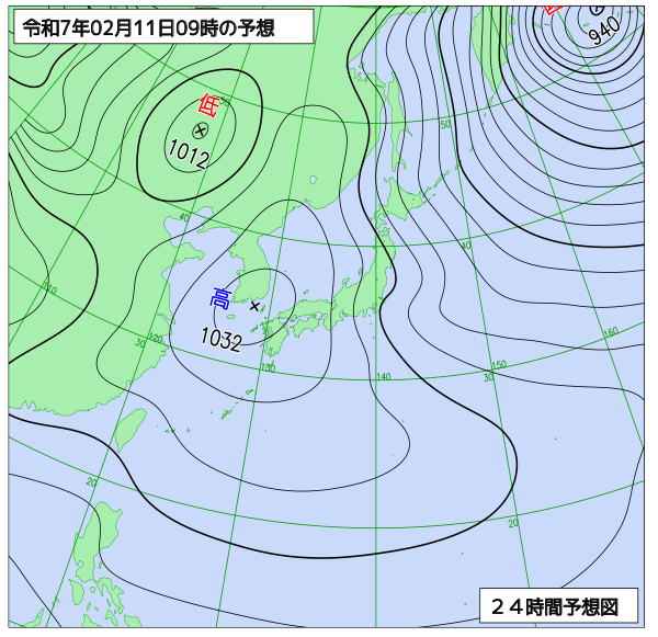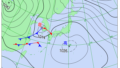 明日は、寒気の影響で、曇り、朝まで雪の降る所がありますが、午後からは高気圧に覆われて、晴れてくるでしょう。