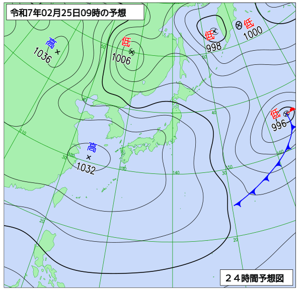 明日は、九州西海上の高気圧の圏内で、晴れて、朝は放射冷却と寒気で低温に注意してください。