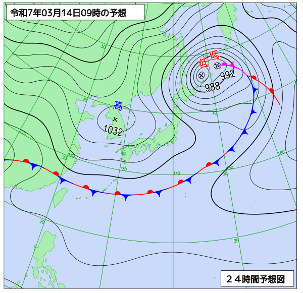 明日は、朝まで上空の気圧の谷の影響で薄曇ですが、昼前からは高気圧に覆われて晴れてくるでしょう。