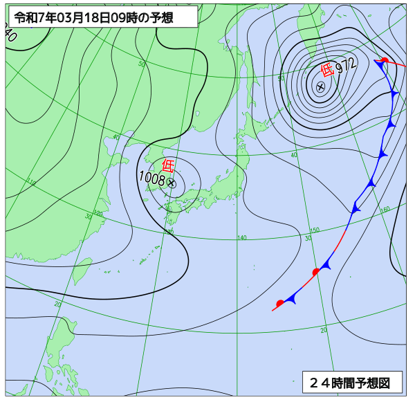 明日は、低気圧が日本海を東進するため、曇り、昼過ぎからは雨が降るでしょう。