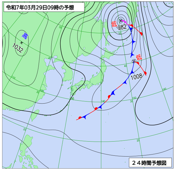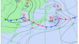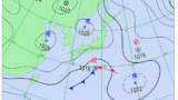 明日は、気圧の谷の影響で、朝まで曇り、その後は高気圧に覆われて晴れますが、夜は気圧の谷の影響で、雷雨の所があるでしょう。