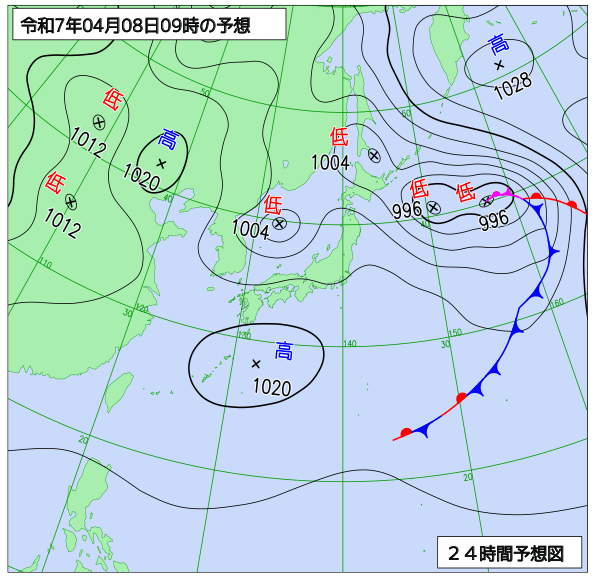 明日は、高気圧に覆われて晴れますが、午後は気圧の谷の影響で、曇り、にわか雨の降る所があるでしょう。