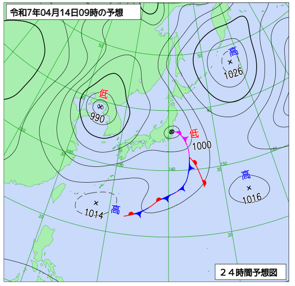 明後日は、低気圧が日本海を東進するため、雨が昼過ぎまで降る見込みです。