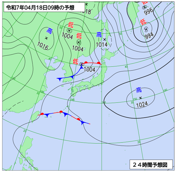 明日は、気圧の谷の影響で概ね曇り、湿った空気の影響で、昼過ぎからは雨や雷雨の所があるでしょう。
