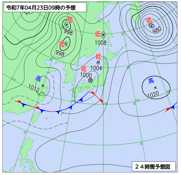 明日は、低気圧が山陰沿岸を東進するため、雨が昼ころまで降るでしょう。