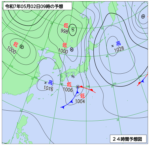明日は、気圧の谷の影響で、雨が明け方まで降りますが、その後は高気圧に覆われて、晴れるでしょう。