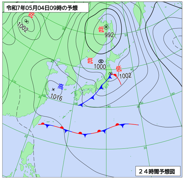 明日は、湿った空気影響で朝まで曇りますが、その後は高気圧に覆われて晴れるでしょう。