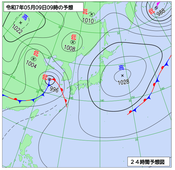 明日は、低気圧の接近で、昼過ぎから雨が降るでしょう。