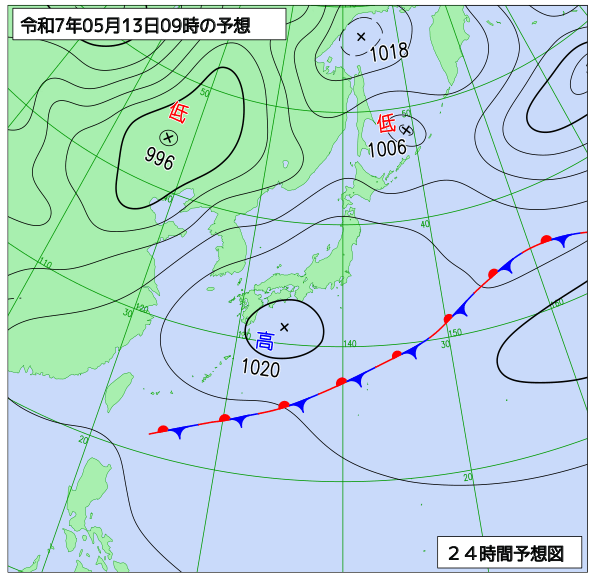 明日は、四国沖の高気圧に覆われて、晴れて気温が上がるでしょう。