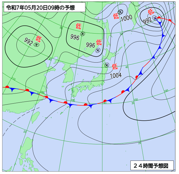 明後日は、気圧の谷の影響で曇り、夕方からは雨が降る見込みです。
