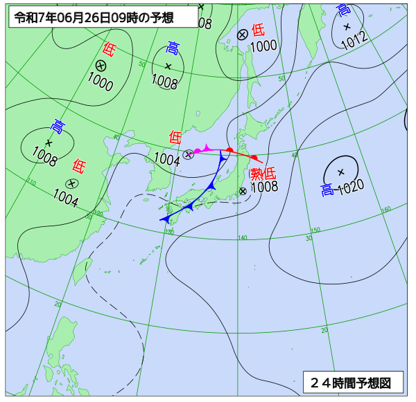 明日は、前線が明け方に山陰を通過するため、雨が激しく降り、大雨になるでしょう。