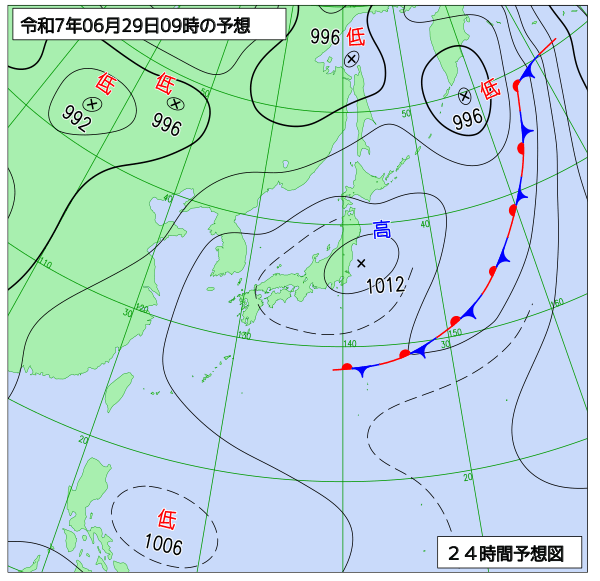 明日は、高気圧に覆われて、晴れて、山沿いで雷雨の所があるでしょう。