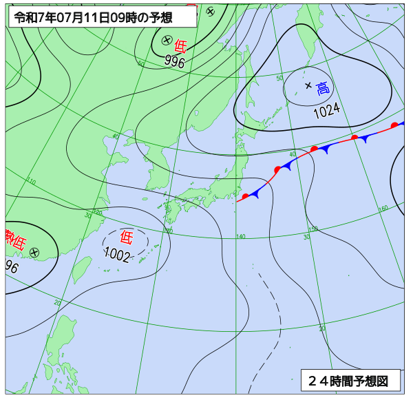 明後日は、湿った空気の影響で、概ね曇り、雷雨の所がある見込みです。